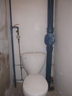 Siis sai ka ukse piirdeliiste, esiku põrandaliistu alla jäävat krohvitud seinaosa lihvitud ja WCs värvitud nii seinu kui torusid (torude värvimise käigus said kena sinise tooni ka mu käed. Ja metallivärv ei tule lihtsalt veega pestes maha!).